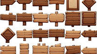 added a sprite sheet of wooden signs - cartoon style...